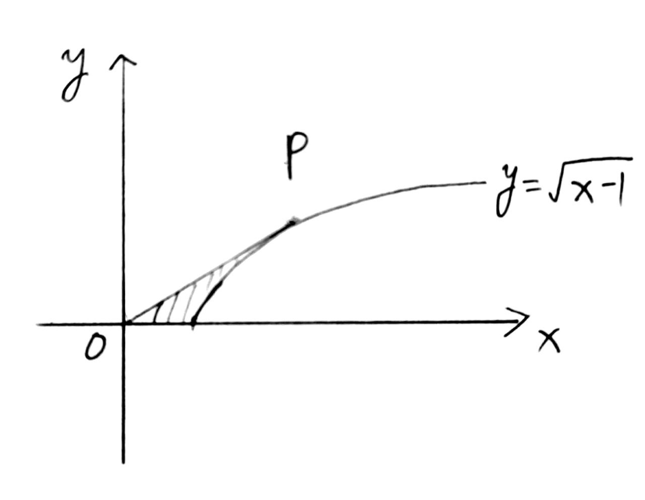 下图为y=x−1的图像,P为y=f(x)上过原点的切线